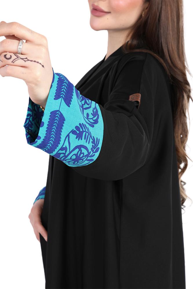 عبايات أوساجي 097 هي خيارك المثالي إذا كنتِ تبحثين عن الأناقة الكلاسيكية الممزوجة بلمسة عصرية. تأتي عباية أوساجي بلونها الأسود الراقي المصنوع من قماش الكريب الناعم والخفيف، ليمنحك إحساسًا بالراحة مع إطلالة مليئة بالفخامة. يتميز التصميم بقصة A-line عادية تنسدل بانسيابية أنيقة، مما يجعلها عملية ومناسبة لمختلف الأوقات. أما الأكمام المزينة بالنقوش الزرقاء الفريدة، فهي تضيف لمسة من التميز والجاذبية، تجعل هذه العباية مختلفة عن التصاميم التقليدية.