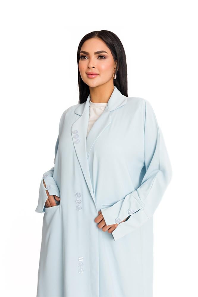 مع عبايات أوساجي 124 تكتشفين معنى البساطة الراقية. عباية أوساجي عبايتك أنتِ، مصنوعة من قماش الكريب الفاخر باللون الأزرق السماوي الفاتح، بتصميم انسيابي يعطيك لمسة من النعومة والهدوء. حضورها يوازن بين العصرية والاحتشام، لتناسب كل المناسبات من الطلعات اليومية حتى الأمسيات الخاصة.