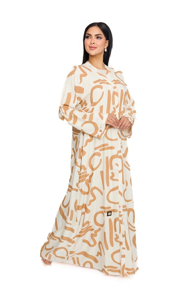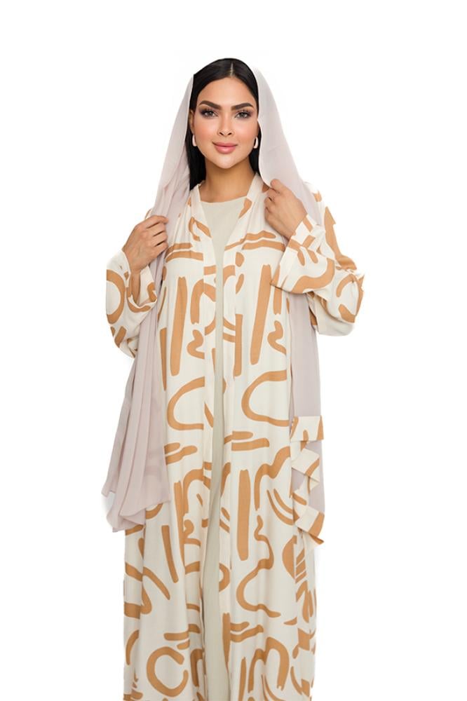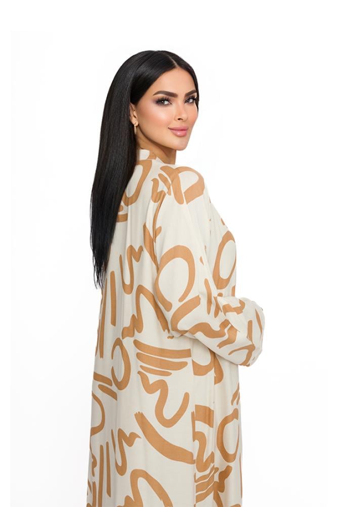 مزينة بطبعات هندسية ونقشة أوراق بألوان أصفر، أبيض، وأسود، تمزج بين البساطة والفخامة بأسلوب يلفت الأنظار. عبايات أوساجي 129 تناسبك لو حابة تطلعين بلوك يعكس روح العبايات الخليجية الكشخة أو تحتاجين عبايات سعودية سوداء فخمة تبرز حضورك. مع عباية أوساجي تلاقين التوازن بين عبايات أنيقة وهادئة وبين عبايات خليجية مطرزة تخطف القلوب.