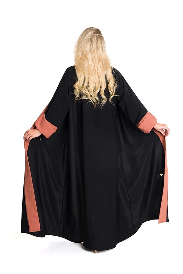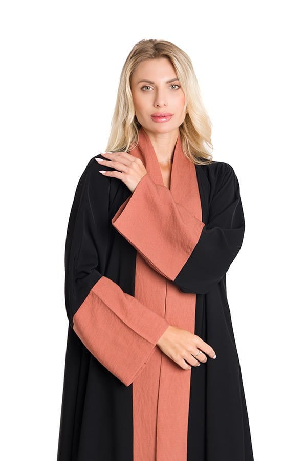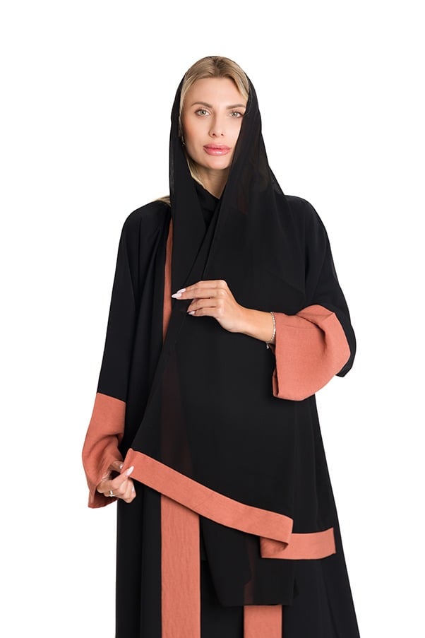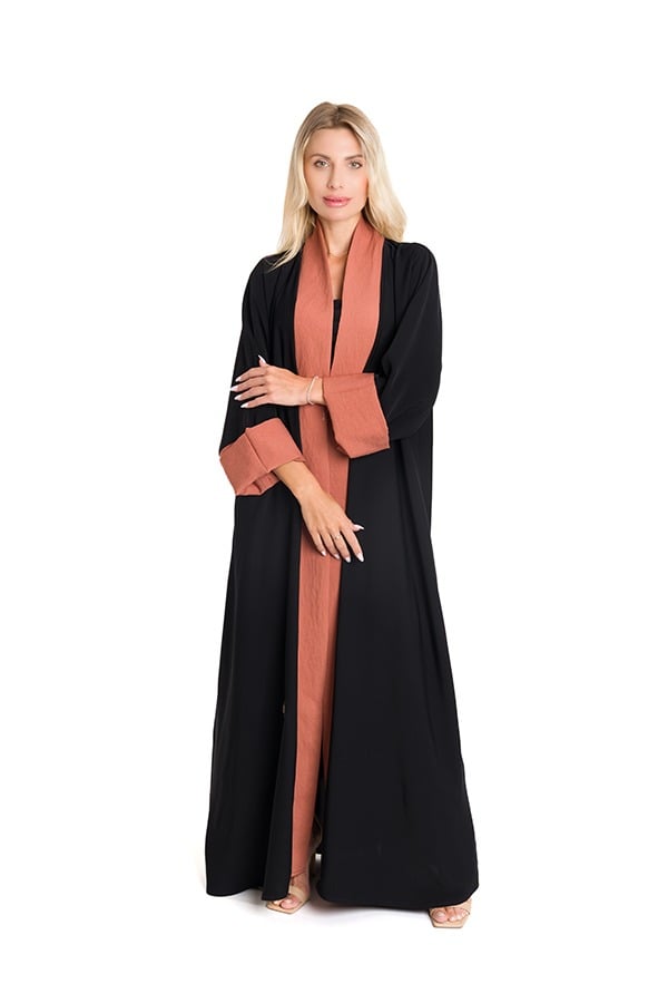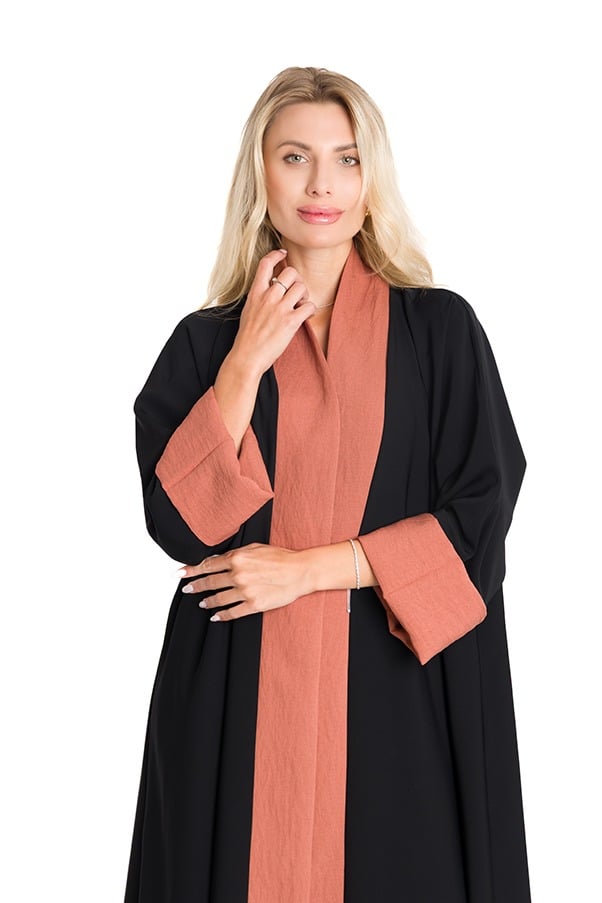 مصنوعة من قماش الكريب الحريري الفاخر بانسيابية ناعمة ولمسة أنثوية فخمة تتزيّن أكمامها ومن الامام من قماش بالون الاورنج تصميم يجمع بين الأناقة والنعومة، مثالي الإطلالات اليومية