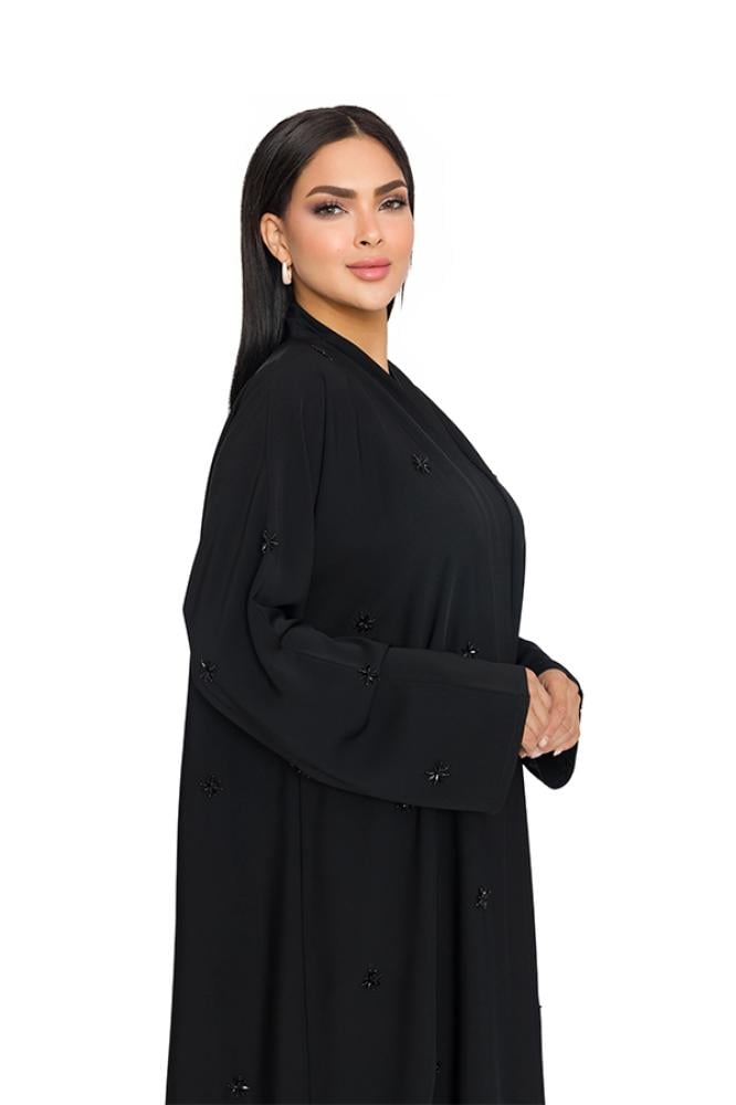 عبايات أوساجي 145 تجسد الرقي والبساطة في آنٍ واحد. هذه العباية الفاخرة صُممت من أجود الأقمشة التي تمنحك راحة وأناقة تدوم طوال اليوم. يزينها تطريز ناعم من الورود الخرزية الموزعة بعناية على التصميم لتضفي لمسة جمالية راقية تجعلها قطعة استثنائية في خزانتك.